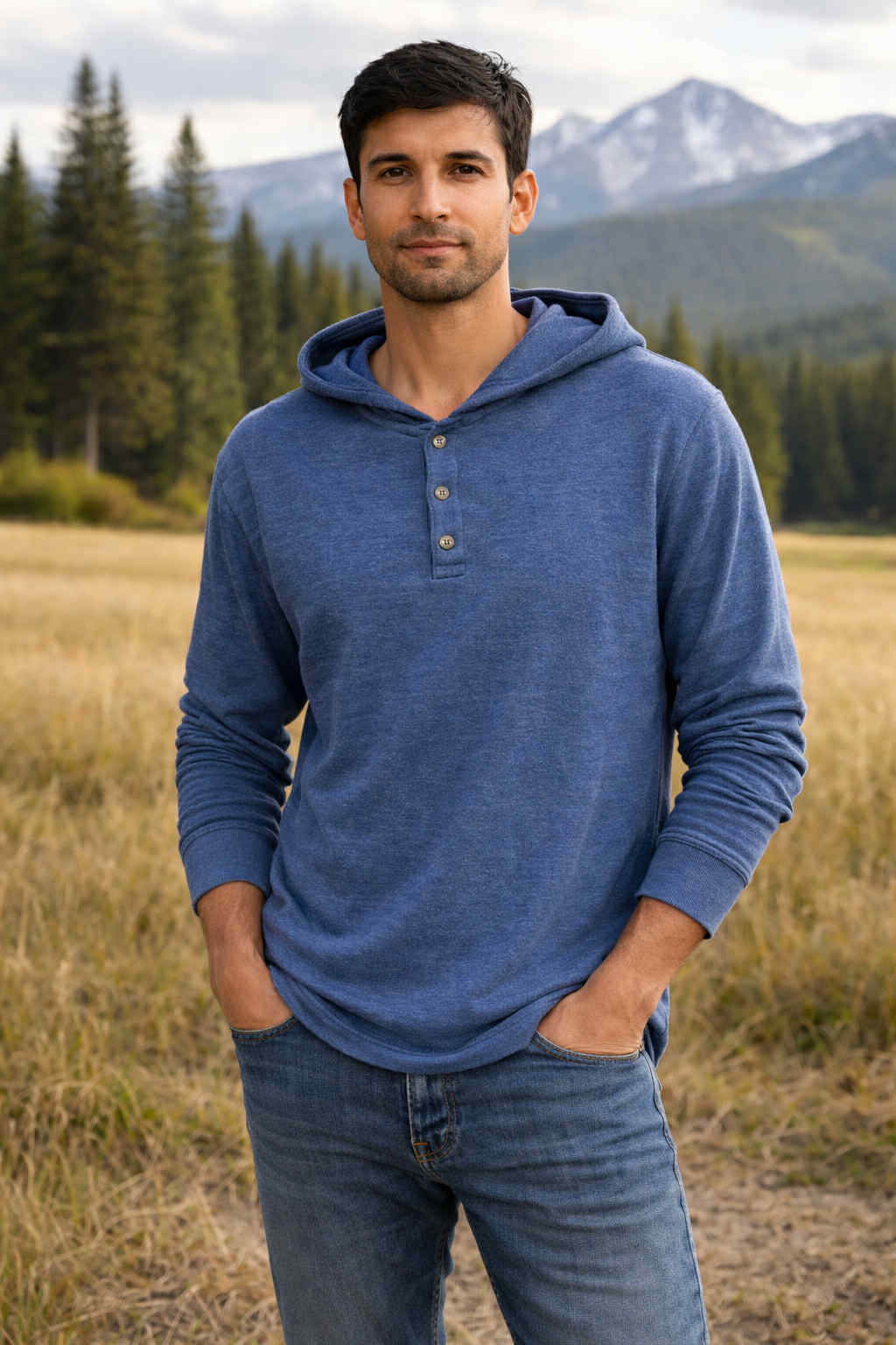 Elevate Your wardrobe with this hooded Henley specifically designed for MEN !