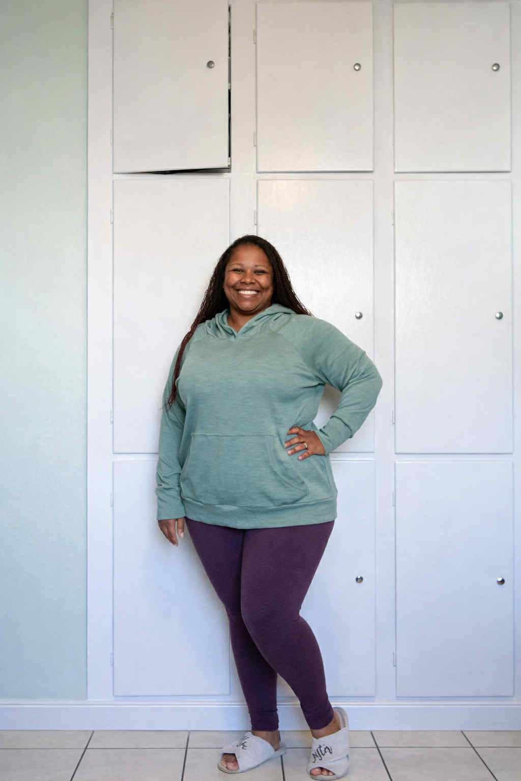 It is Relaxed at the shoulders, bust and waist, fitted at the hips with a bottom waistband. This pattern is Offered with crew neck finished, a lined cowl, or a lined hood. You have the option to have a kangaroo pocket or no pocket.